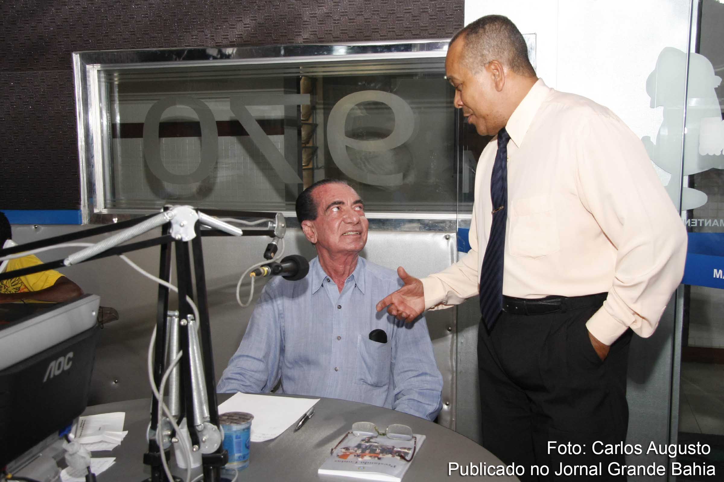 Senador João Durval Carneiro e Joilton Freitas conversam durante entrevista na Rádio Sociedade de Feira de Santana.