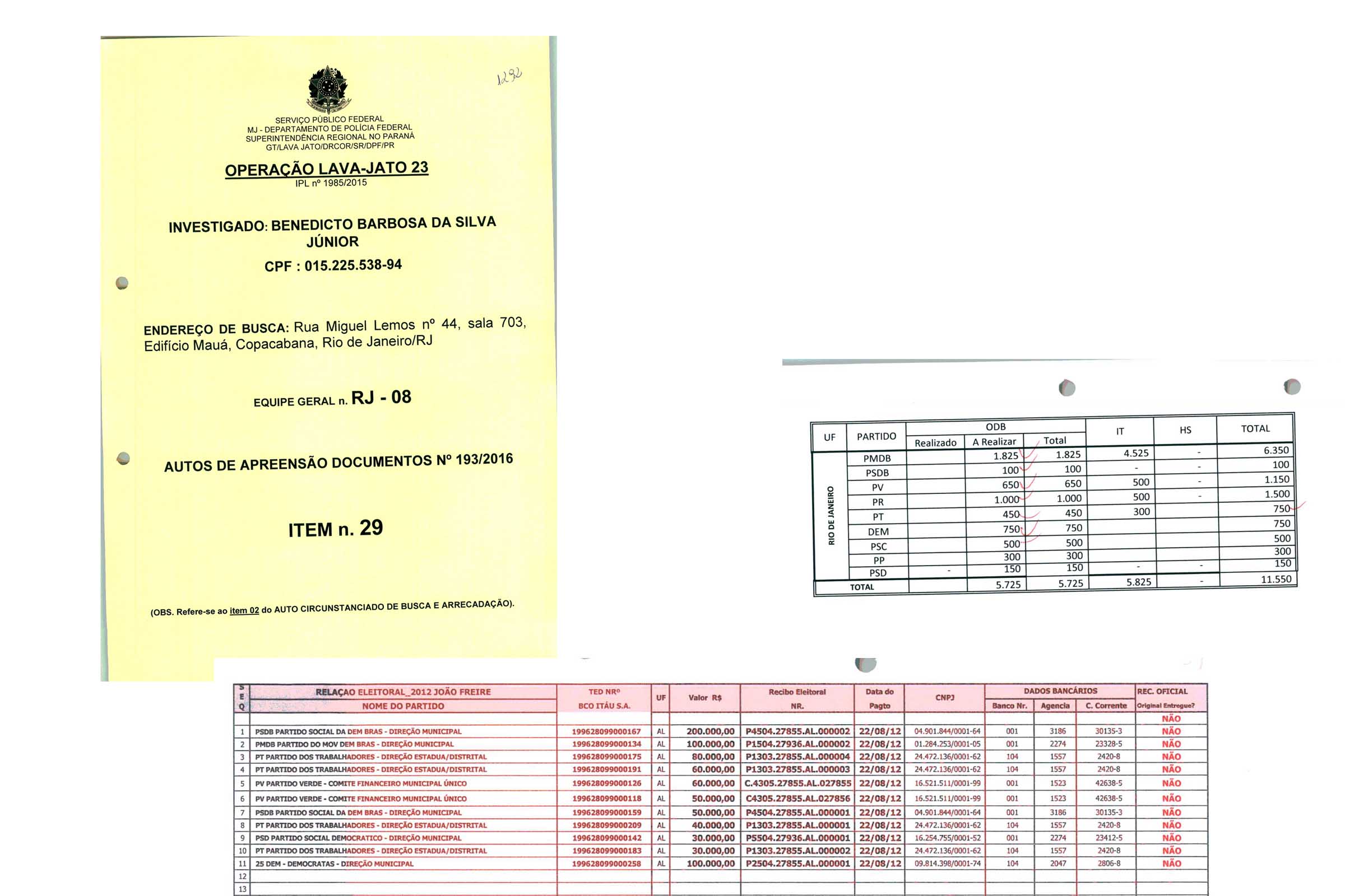 Os documentos foram encontrados em posse de Benedicto Barbosa Silva Junior, presidente da Odebrecht Infraestrutura. De acordo com a força-tarefa da Lava Jato, foi neste departamento que ficava alocado o “setor de operações estruturadas”, cuja função era, segundo os investigadores, o pagamento de propinas.
