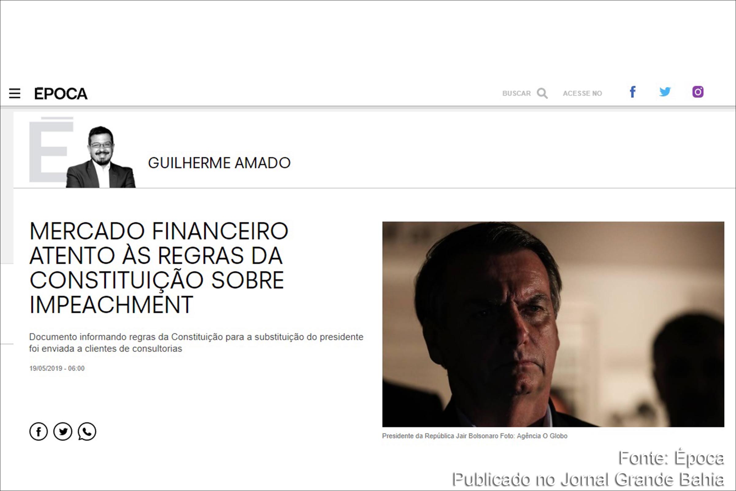 Em pouco mais de quatro meses o governo atual se revelou no mais completo desastre que se tornou visível com grave crise política e econômica, além de denúncias de que o filho dele, o senador Flávio Bolsonaro (PSL-RJ), formou quadrilha quando era deputado estadual Estes ingredientes apimentaram e vem até mesmo acelerando o desprestígio do presidente da República. Resultando na insatisfação popular. Condições ideais que fizeram com que o impeachment passe a ser uma realidade, discutido nos bastidores políticos.