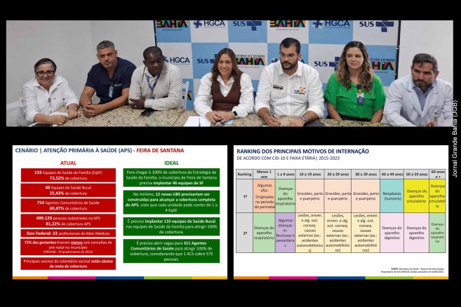 A secretária da Saúde da Bahia, Roberta Santana, apresentou os desafios e investimentos na saúde de Feira de Santana, destacando deficiências na cobertura da atenção básica e na vacinação. O Governo Jerônimo investiu R$ 10,04 bilhões em 2023 e até agosto de 2024 foram mais R$ 6,55 bilhões, criando leitos e ampliando a rede de atendimento. A Policlínica Regional de Saúde e o HGCA são destaques, enquanto a Gestão municipal do prefeito Colbert Martins enfrenta inadimplência no consórcio responsável pela gestão da Policlínica Regional de Saúde.