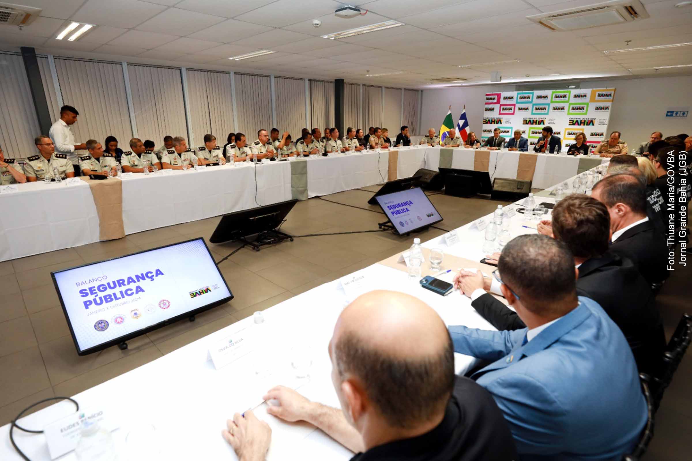 Nesta quinta-feira (24/10/2024), o governador Jerônimo Rodrigues convocou uma reunião com os chefes e comandantes das forças de segurança da Bahia. O objetivo do encontro foi avaliar o andamento das ações de segurança realizadas no estado e realizar um balanço dos resultados obtidos. Participaram da reunião representantes das Polícias Civil, Militar e Penal, do Departamento de Polícia Técnica e do Corpo de Bombeiros. O evento ocorreu no Centro de Operações e Inteligência (COI), localizado no Centro Administrativo da capital baiana.